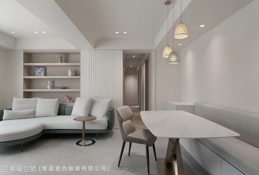 嵌入式收納與留白牆面,使空間視覺純淨而延伸,光線在細緻材質間遊走,形成柔和的層次。
