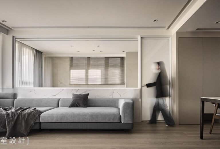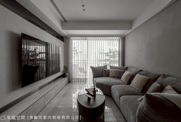 本案以柔霧灰與木質調為主軸,運用簡約線條勾勒出溫潤而沉靜的氛圍。