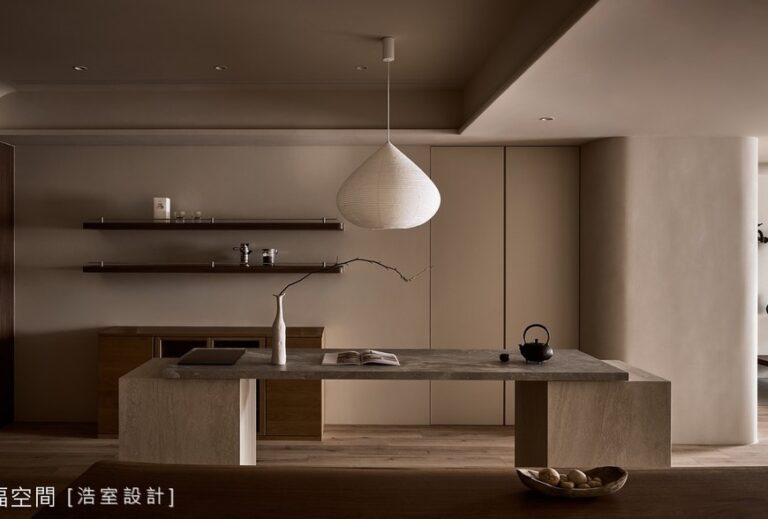 棲光。育時│侘寂風│75坪以全新的視角解構屋齡19年居宅,透過全新的平面配置與材料語彙,重塑侘寂質韻的當代生活場景。